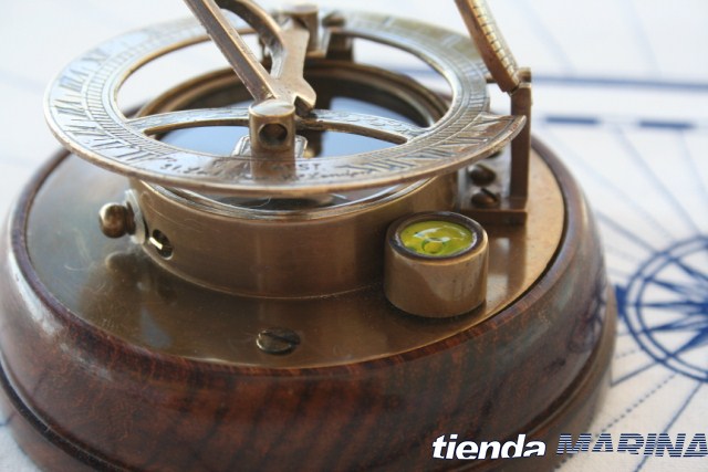 Brújula en latón viejo con una base de madera noble, maciza con sus formas torneadas dando una imagen de un exquisito regalo para poder disfrutar de el en cualquier lugar pues su elegancia destacaría en su entorno.