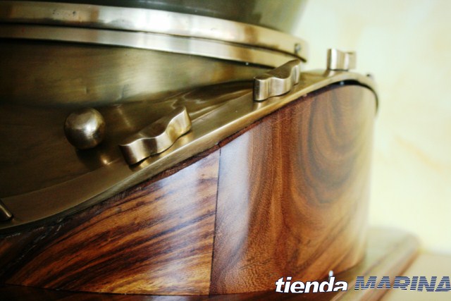 Esta reproducción de un casco de buzo, escafandra, esta hecha en latón y hierro.